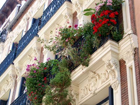 No abundan hoy en día los balcones con flores, más bien vemos en ellos a menudo un feo surtido de antenas, trastos y aires acondicionados, por eso refresca la vista y la mente contemplar «jardincillos» como este que pudimos fotografiar hace una década en la calle San Carlos, en Lavapiés.