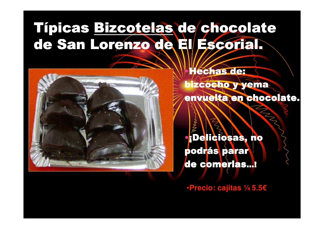Dentro de las creaciones pasteleras madrileñas hay que reseñar las bizcotelas, que poco a poco se han convertido en un dulce típico de El Escorial.