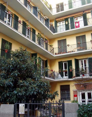 Estupendo este edificio, además de estar en una callejuela muy tranquila. Y la influencia de Zuazo y su Casa de las Flores muy clara. Hay un edificio en frente del parque Eva Perón en Manuel Becerra que también tiene ese toque de corredores a la italiana. Por cierto que el edificio de enfrente del de la entrada, tiene algunos toques modernistas que también son dignos de mención. Lo único que el edificio de Princesa de seguros Ocaso es bastante malengo desde el punto de vista arquitectónico; muy simplón, muy exagerado en las proporciones…