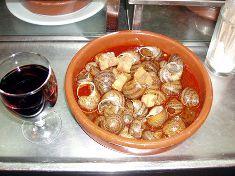 El caracol, molusco que medraba en los amenos huertos de los alrededores de Madrid, tuvo muchos partidarios entre los vecinos de esta villa por su precio accesible y su buena combinación con ricas salsas.