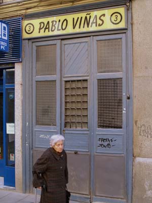 En Sandoval semiesquina a Fuencarral se encuentra la cristalería Viñas, cuya portada, de puro sencilla, me resulta especialmente atractiva. Y es que entre tanta tienda de chorraditas y de ropita de usar y tirar que invaden el centro de Madrid, los escasos y necesarios talleres de oficios tienen una entidad y una presencia que admira al paseante.