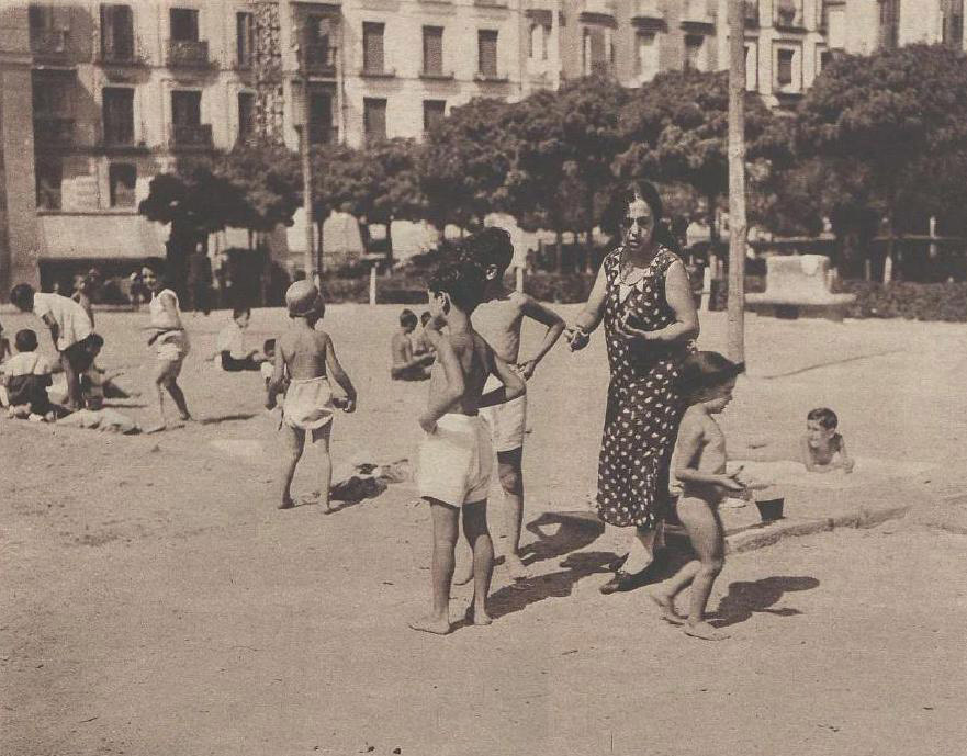 Simpáticas fotos de 1932 que nos muestran a un grupo de niños bañándose en una especie de piscina situada en la Plaza de Barceló, junto al metro de Tribunal.