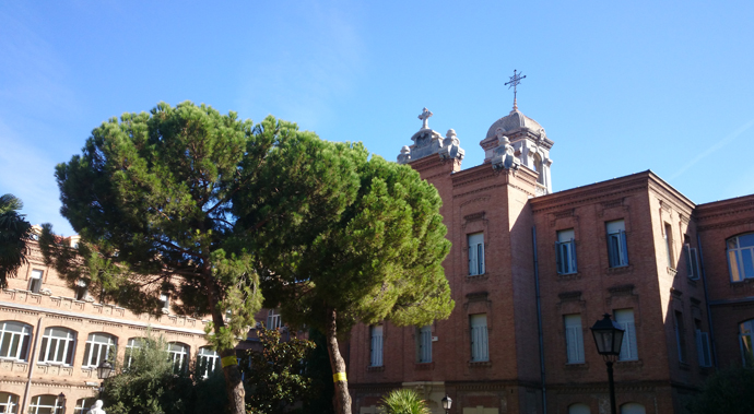 Guiado por una guía excepcional, Mar Macarrón. el caminante se acerca a conocer el edificio de las Hermanitas de los Pobres, en la calle del Doctor Esquerdo, 49, enfrente de la Casa de la Moneda.