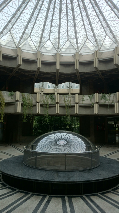 El jardín del patio central del edificio hubo de ser suprimido y cerrado con una claraboya de cristal por necesidades de la institución