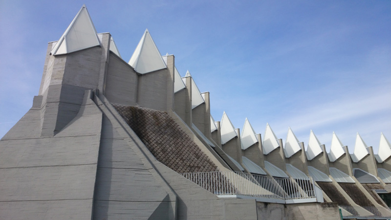 El edificio conocido popularmente como «la corona de espinas» es una de las obras más interesantes del arquitecto Fernando Higueras, en colaboración con Antonio Miró.