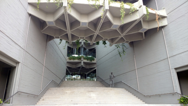Higueras creó un edificio circular de cuatro alturas realizado en hormigón armado visto.