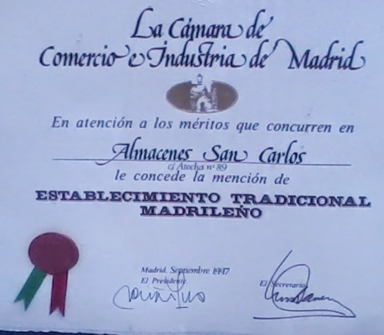 Almacenes San Carlos, en Atocha, 89, cierra sus puertas, y Rosa, la dueña, ha colocado unos cartelitos en la puerta a modo de despedida.