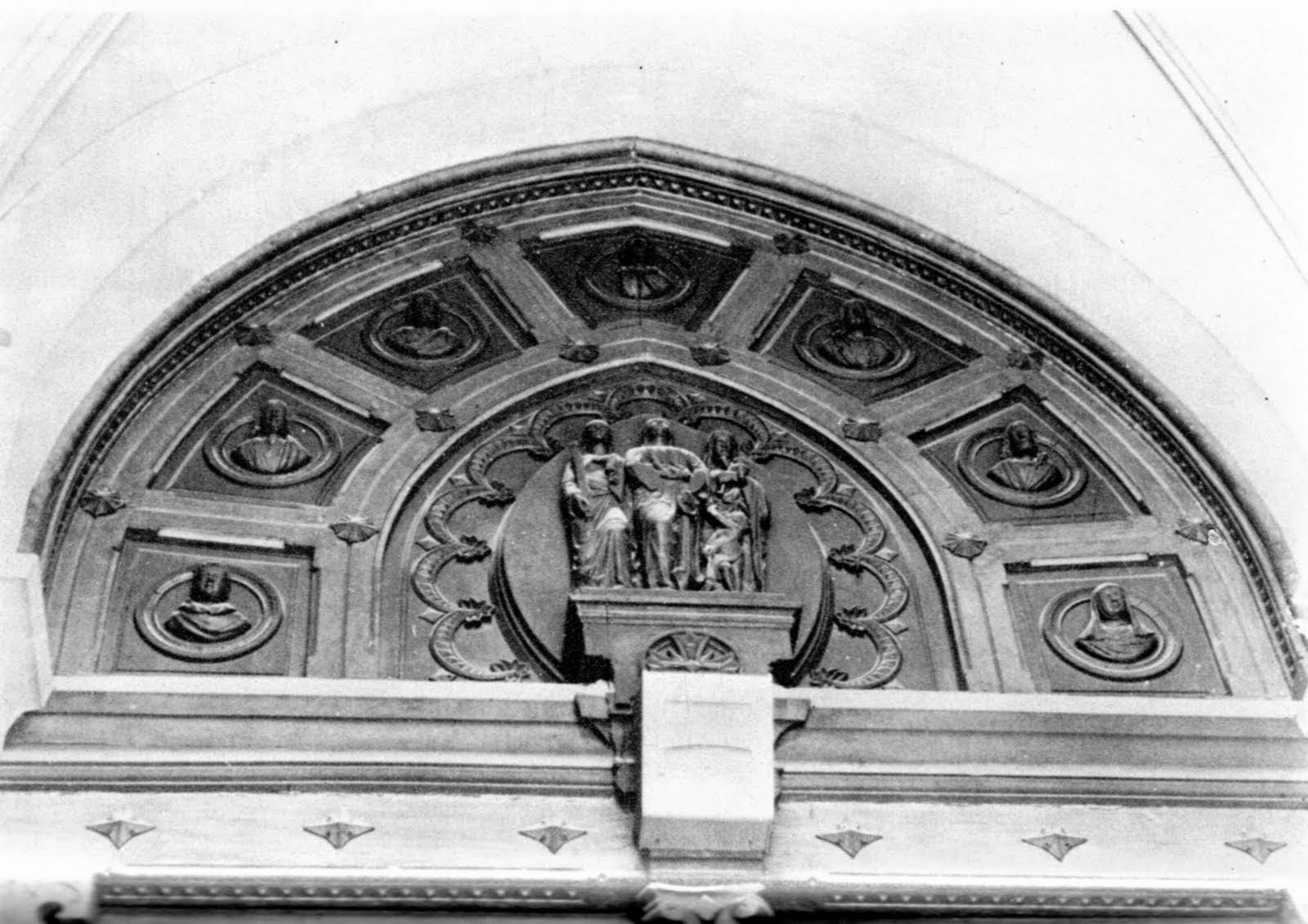 A diferencia de otras iglesias madrileñas, esta tenía un valor añadido pues parte de ella estaba construida con piedra. En la foto superior vemos el desaparecido relieve del tímpano de la portada, obra de Eduardo Barrón.