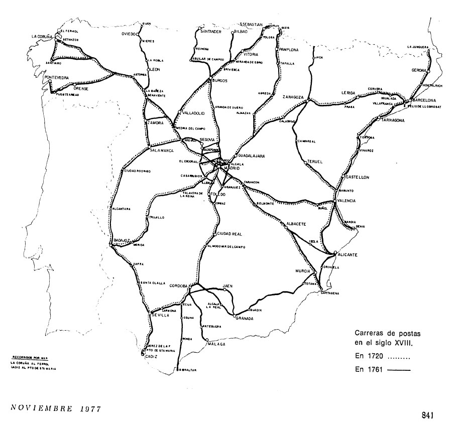 En 1720 se establecieron seis itinerarios de postas que aún hoy siguen siendo las seis rutas principales de la red viaria, aunque ya no les llamamos caminos, sino carreteras nacionales (nacional I, II, III, IV, V y VI)