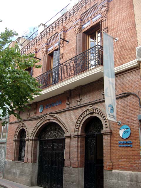 Foto 4: Sede de la asociación ornitológica Seo-Birdlife, donde siempre hay proyectos a los que pueden apuntarse los amantes de las aves. Precioso edificio de ladrillo con bellos trabajos de forja y apliques cerámicos. (En Melquiades Biencinto, 34)