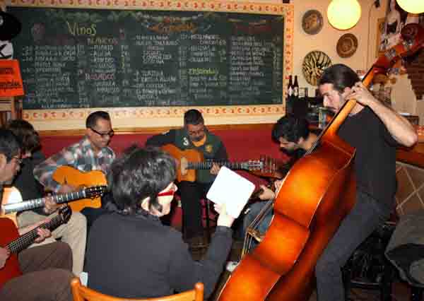 En estas sesiones, a las que acude el grupo Batxaló Drom, no es difícil que Laura Toro se arranque a cantar con su extraordinaria voz, una de las voces más sugerentes que se pueden escuchar en los bares de Madrid.