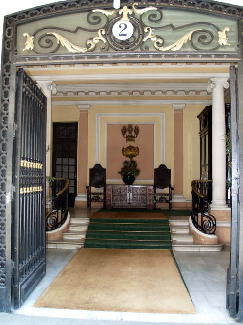 Construido sobre un solar en esquina, destaca su amplia y bella rotonda.