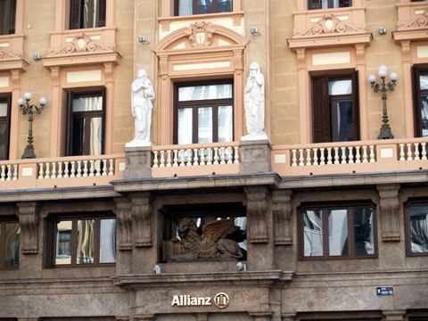 Edificio de estética cercana al barroco, con frontones curvos y detalles clasicistas, como el templete circular que iba a tener un faro luminoso. Tiene un reloj en la fachada. En el interior hay una interesante escalera. Encima del portal hay un relieve con león alado símbolo de la compañía.
