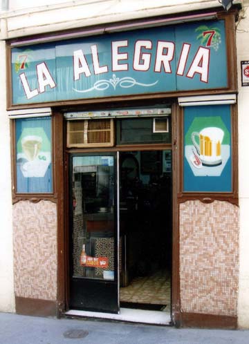 En la calle Veneras Nº 7, cerquita de la plaza de Santo Domingo, se halla esta pequeña tasca cuya expresiva portada no deja indiferente al paseante. El rótulo y los dibujos, pintados en la cara interior del cristal, se hicieron en 1950.