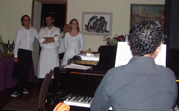 La sorpresa comienza cuando los mismos camareros que te están sirviendo el vino, comienzan a entonar conocidas arias de ópera y zarzuela. Todos ellos son cantantes de primer nivel.