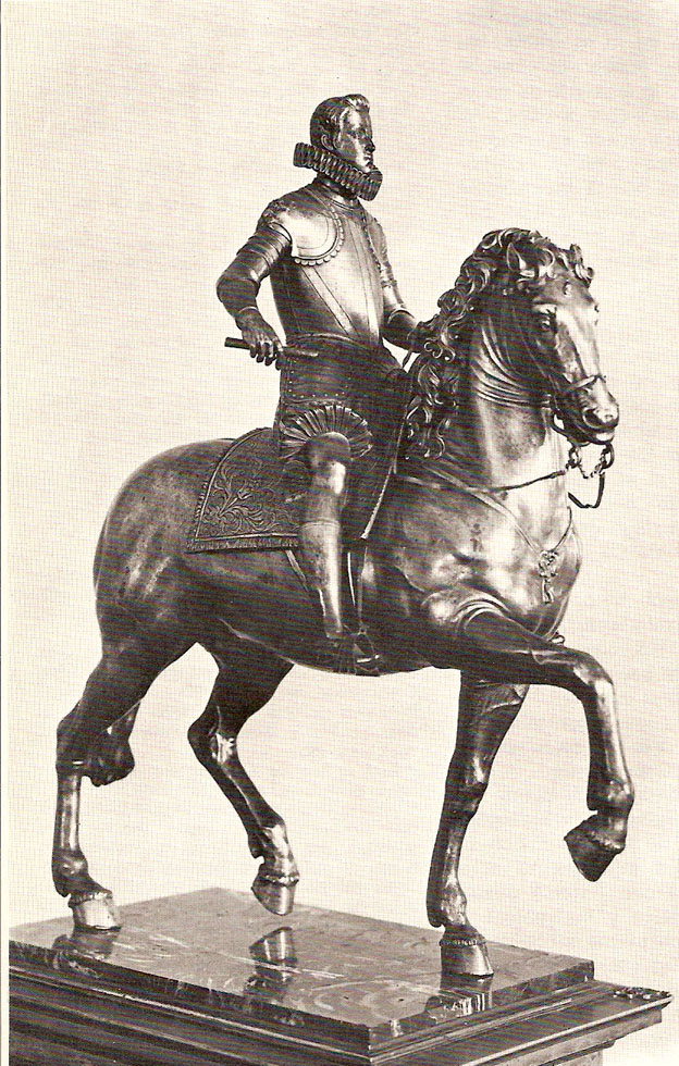 En esta imagen vemos una estatuilla de Felipe III atribuida a Juan de Bolonia que probablemente sirvió como boceto para la gran estatua a caballo del monarca.
