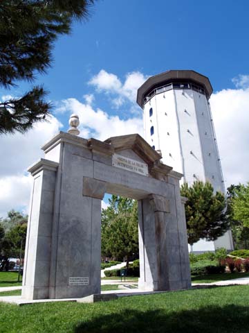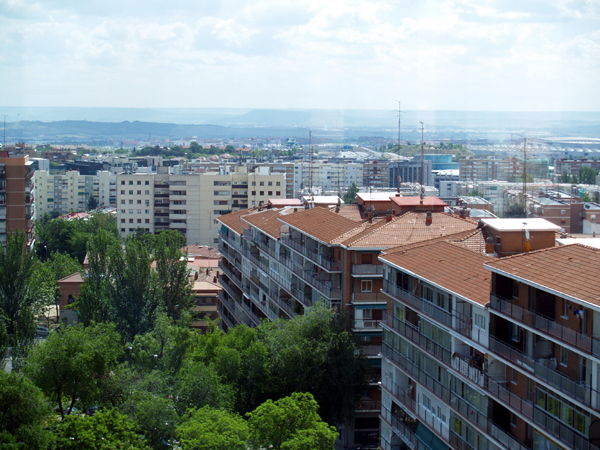 He subido hasta arriba y he hecho unas fotillos que, mal que bien, reflejan lo que se ve desde allí: una barriada que creció demasiado deprisa, aunque, afortunadamente, con bastantes espacios verdes.