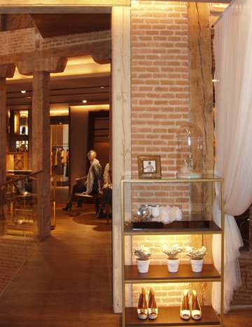 La nueva sede de este gran modista tiene cinco plantas y una superficie de 2000 metros cuadrados. Un sitio digno de verse. En tiempos en que lo cutre y lo prefabricado van ganando terreno en las calles madrileñas, el diseño de esta hermosa tienda brilla con luz propia.