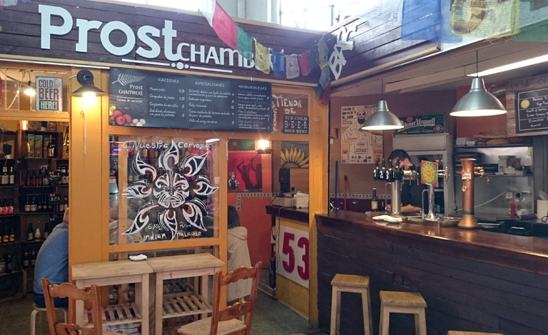 Un puesto de cervezas artesanas La Virgen, y varios bares. Está bien que los mercados tengan bares y restaurantes; pero con un control, porque si proliferan pueden acabar por fagocitar aquello que se pretendía revitalizar, como ha pasado en San Antón y en San Miguel. El caso es que los fines de semana, al atardecer, un nutrido público juvenil inunda el mercado para visitar estos nuevos bares.