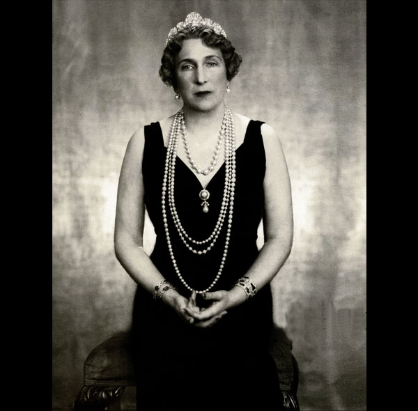 Durante un tiempo se creyó, erróneamente, que una perla de formas parecidas, la que luce en esta foto la reina Victoria Eugenia, que es la misma suele llevar de vez en cuando la reina doña Sofía, era la auténtica Perla Peregrina.