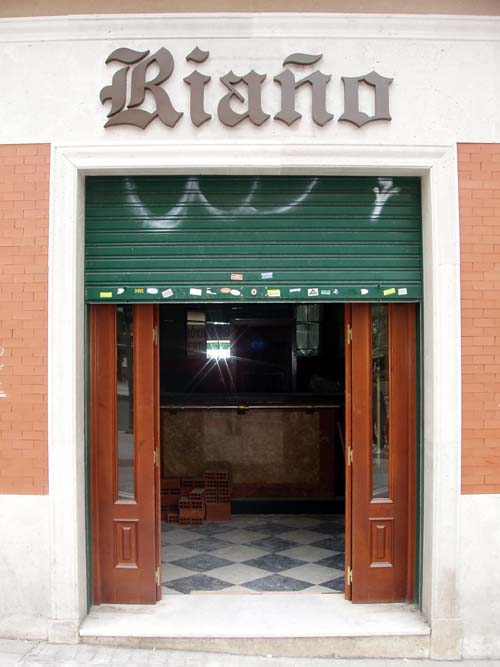 Hace 10 años, la taberna cerró porque vaciaron el edificio para incrementar su altura. Hace dos o tres años, si no recuerdo mal, abrieron «Nuevo Riaño» en la perpendicular calle de Gutiérrez Mellado, pero no tuvo éxito. Afortunadamente, Riaño volverá a abrir sus puertas, en la esquina de siempre, dentro de unas semanas, y con una decoración que trata de recordar a la que hubo (la original era de 1947). Lo esperamos con impaciencia, porque la zona de Cea Bermúdez no ha vuelto a ser la misma desde que cerró Riaño.