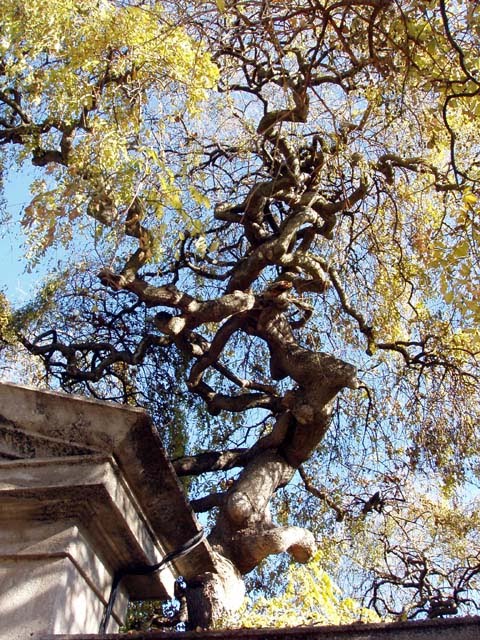 Este árbol tan flamenco aque asoma tras la tapia del jardín, en la Casita del Príncipe, en El Pardo, es una sofora llorona. Esta variedad de acacia tiene por nombre científico «Sofora japónica pendula». Pese al nombre no procede de Japón, , sino de China. Llegó a París en 1857 y luego pasó a España. Sus ramas, que reconocerás porque son las que aparecen en los dibujos y lacas de la antigua china, se retuercen como si bailasen sevillanas creando un efecto de gran belleza y mejor ritmo. Sus hojas caen como las del sauce, semejando lágrimas, por lo que se le llama llorona.